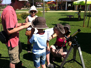 Tal como já tínhamos programado este mês as observações do Sol passaram a ser feitas no Parque da Vila. E assim aconteceu no primeiro sábado do mês, com a presença de alguns pais acompanhados dos seus filhos que aproveitando o período de férias fizeram-nos esta visita. Nos próximos sábados iremos continuar as observações do Sol no mesmo local sempre pelas 16h00. Aguardamos a vossa visita :)